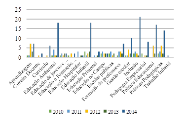 Figura 4. Frequência dos temas na produção dos TCCs da FAED – 2010 a 2014.